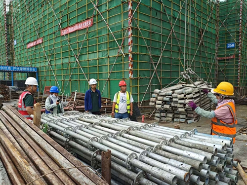 來(lái)到3樓頂板上方,工人們正搭建防護(hù)網(wǎng)。“他們是這個(gè)工作面的開荒者,危險(xiǎn)系數(shù)最大。”葉劉杰說(shuō),只有防護(hù)網(wǎng)搭建完畢,木工、鋼筋工等不同班組才能陸續(xù)入場(chǎng)施工。仔細(xì)查看每道工序,并對(duì)當(dāng)班工人叮囑一番注意事項(xiàng)后,葉劉杰才放心離開。